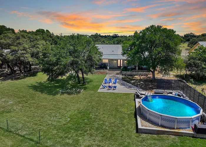 Refrigerador e forno, bem como outras comodidades auto-suficientes, como máquinas de café/chá, são fornecidos numa cozinha totalmente equipada. A propriedade também está localizada a 49 minutos de carro do aeroporto Internacional de Austin. Esta propriedade tem pátio para relaxar após um dia agitado, juntamente com piscina ao ar livre.